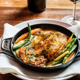 My date and I had a restaurant week menu reservation for a table, but was told it would be a wait for it, although bar seating was available. We opted for the kitchen bar seating to watch the action. The restaurant has an inviting, intimate feel even though the two rooms make for a fairly large restaurant. All the staff were extremely pleasant, with comfortable and inviting smiles. When we sat down, we were surprised to see that the dish that we were most looking forward to, the duck l'orange, was not on the menu. On inquiry, apparently the wrong menu was posted to the restaurant week website. We asked if we could go off the restaurant week menu entirely so we could try the duck, but was told it wasn't possible. We started the evening with cocktails, and I had a Negroni. Extremely well made, and maybe a smidge generous of a pour, it was a great start to the meal. The first course then arrived fairly swiftly, which we chose French onion soup and escargot. The French onion soup was a bit bland, but the escargot was some of the best I've had - Plump, soft, and completely drenched with butter and garlic and just the right temperature - hot but not burn your mouth inferno. For our mains we had the Duroc pork and the bolognese. The duroc pork chop was so tender and moist - we asked how they got such a texture and our outstanding waiter Scotty said that it was due to a 72 hour brine. The aged New York bolognese was good, but did not have any of the aged beef notes I was expecting. To be fair, the menu did not indicate how long the beef had been dry aged. We also ordered a side of Mac and Cheese, which I found to be lacking in flavor. Our desert course was a creme brûlée which was baked a tad unevenly but otherwise unremarkable. But fortunately our waiter saved the day by pushing through a special request for the appetizer of baked Brie to be served as one of our desserts - and it was a showstopper! The baked brie drizzled in honey with dried cranberries and pistachios hit all the spots - various textures, salty sweet and savory, and served with toast points for the perfect delivery. During our dessert course, a couple of lights were being turned off around us, which was a tad off putting. We booked a 8pm dinner and to be fair the restaurant indicated a 9pm close, however we specifically booked the restaurant week menu and thought they would have accounted for that. All in all, considering the fact that all three courses were 55-60 a person for restaurant week, the price-value of this cannot be denied. I will definitely be returning to try the duck and the goat cheese cheesecake that I was also eyeing.
